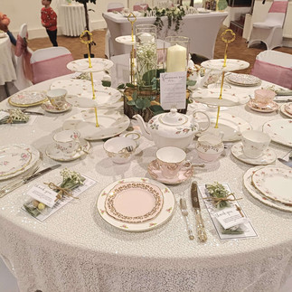 Vintage china adds a beauty and elegance, it will not only lift the tables, but also the venue room. It doesn't matter what the venue is, village hall, a club of some kind that hires out spaces, hotel, marquee, vintage china just works.